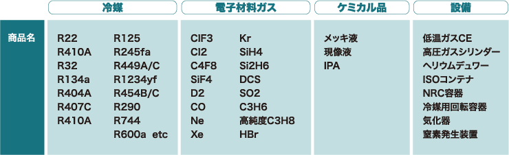 LAR、LCO2、DRY-ICE、DME:Dimethyl ether、